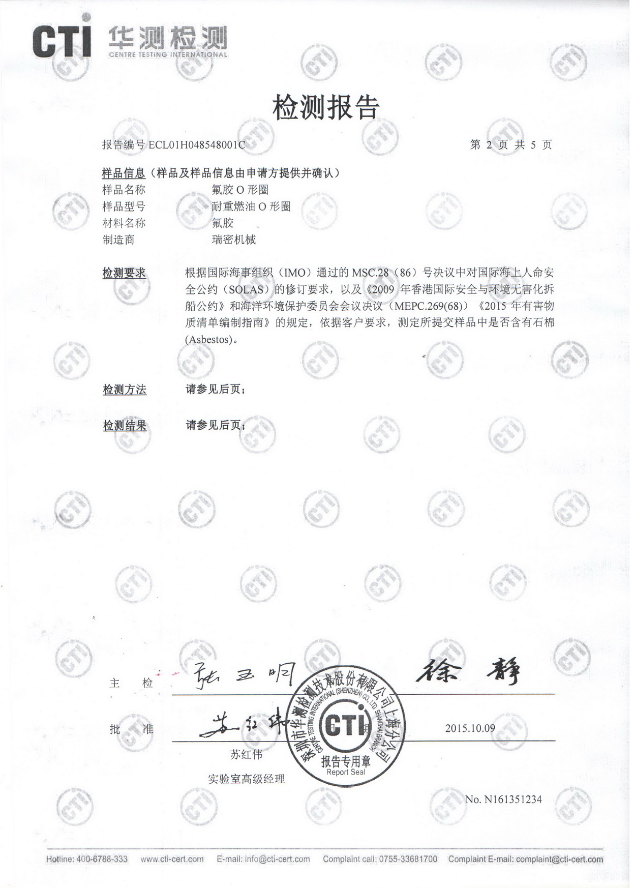 瑞密机械-氟胶O形圈无石棉检测通过