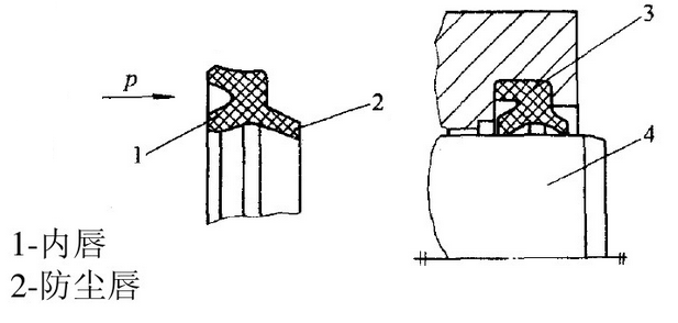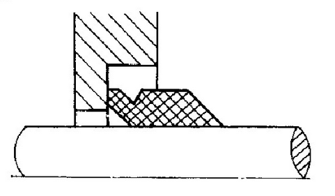 旋转轴用防尘圈是一种用于旋转轴端面密封的防尘装置,其截面形状和安装情况如图所示。防尘圈的密封唇缘紧贴轴颈表面,并随轴一起转动,由于离心力的作用,斜面上的尘土等异物均被抛离密封部位,从而起到防尘和密封作用。这种防尘圈的特点是:结构简单、拆装方便、防尘效果好;不受轴的偏心、振摆和跳动等影响;对轴无磨损。