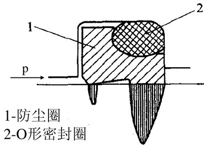 2型Turcon防尘圈包含一个用Turcon材料制作的防尘圈和一个作为弹性施力元件的O形密封圈、防尘圈的截面形状及其接触应力分布。O形密封圈的弹性确保防尘唇均匀地紧贴在滑动表面上,从而使防尘圈起到了刮尘的作用。由于Turcon是一种极为耐磨、并经过特殊改进的聚四氟乙烯材料,其固有刚度高,因此防尘圈即使在苛刻条件下使用也不会变形。防尘圈的工作速度不大于1.5m/s,工作温度-54~+200℃(取决于O形密封圈材质)。