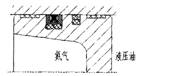 9)支承环+AQ+孔用斯特封+支承环(图6-34):该结构也可根据需要在AQ封和孔用斯特封之间再加一个支承环。专门适用于活塞式蓄能器,AQ封装于氮气侧,用作气体的低泄漏密封,孔用斯特封装于油液侧,用作油液的高压密封。