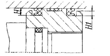 1)V形圈+支承环+Y形圈(图6-26):该结构适用于一般场合的中、低压工业液压缸和气缸,图中Y形圈也可替换为H形圈、U形圈等派生产品。注意沟槽两侧的台肩高度,须保证H1≥2/3H(液压缸)、H1≥l/2H(气缸)。