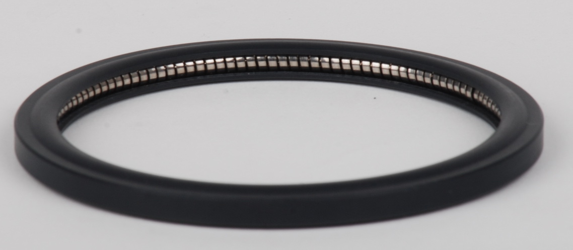 泛塞封是一种U型铁氟龙内装特殊弹簧的高性能密封件,由适当的弹簧力加上系统流体压力,将密封唇(面)顶出而轻轻压住被密封的金属面以生成非常优异的密封效果。弹簧的致动效应可以克服金属配合面的轻微偏心以及密封唇的磨耗,而持续保有预期的密封性能。